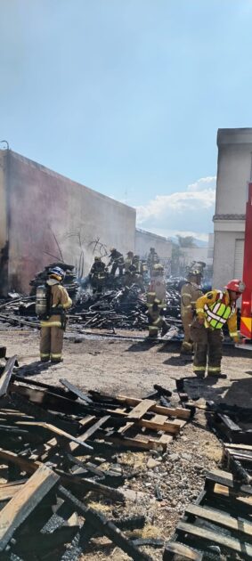 Morelia, Michoacán, a 28 de diciembre de 2025.- La Coordinación de Protección Civil y Bomberos de Morelia atendió de forma inmediata un incendio registrado este día en las proximidades de la colonia La Quemada, ubicada al norponiente de la ciudad, al interior de un negocio dedicado al resguardo de tarimas.