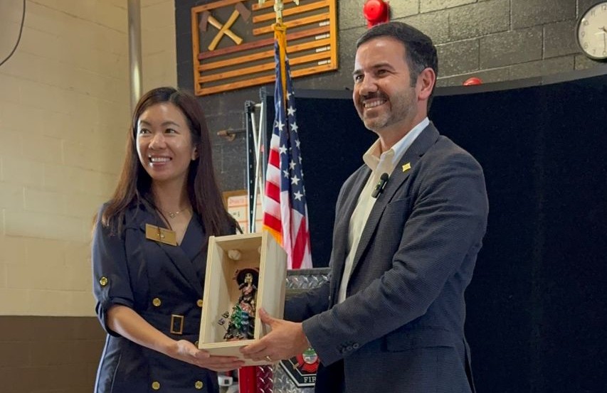 Monterey Park, California; 14 de marzo de 2026.- El Secretario del Ayuntamiento, Yankel Benítez Silva, reconoció que el donativo de equipamiento para el cuerpo de bomberos de Morelia, proveniente de la estación de bomberos de Monterey Park, California, es el resultado de los Hermanamientos que la capital mantiene con diversas ciudades.